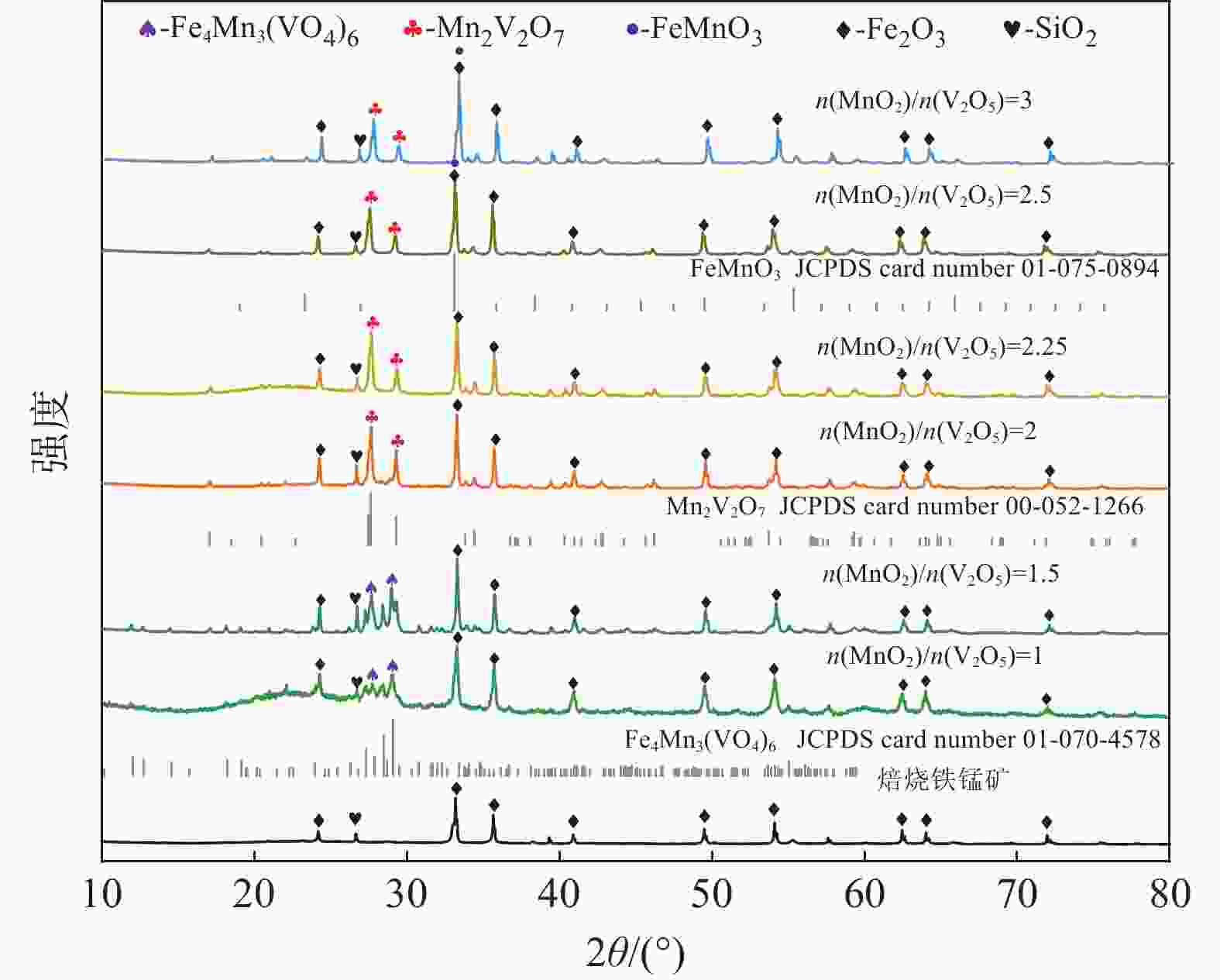 图  4  不同n(MnO2)/n(V2O5)下焙烧熟料的XRD谱