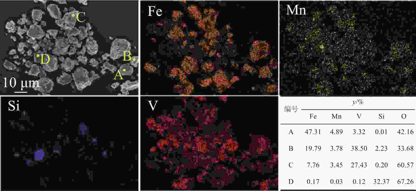 图  7  含钒含铁浸出尾渣的SEM形貌和主要元素分布