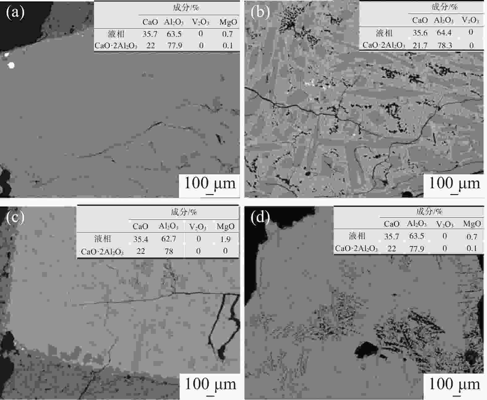 ℃时,钒铝合金的钒收率可达到95%左右,钒铝合金锭无裂隙和氧化膜,钒铝合金的成品率显著提升。此外,还确定了CaO/Al2O3比值对炉渣粘度的影响,当造渣剂用量超过22.5%时,渣金的分离效果显著提升。
