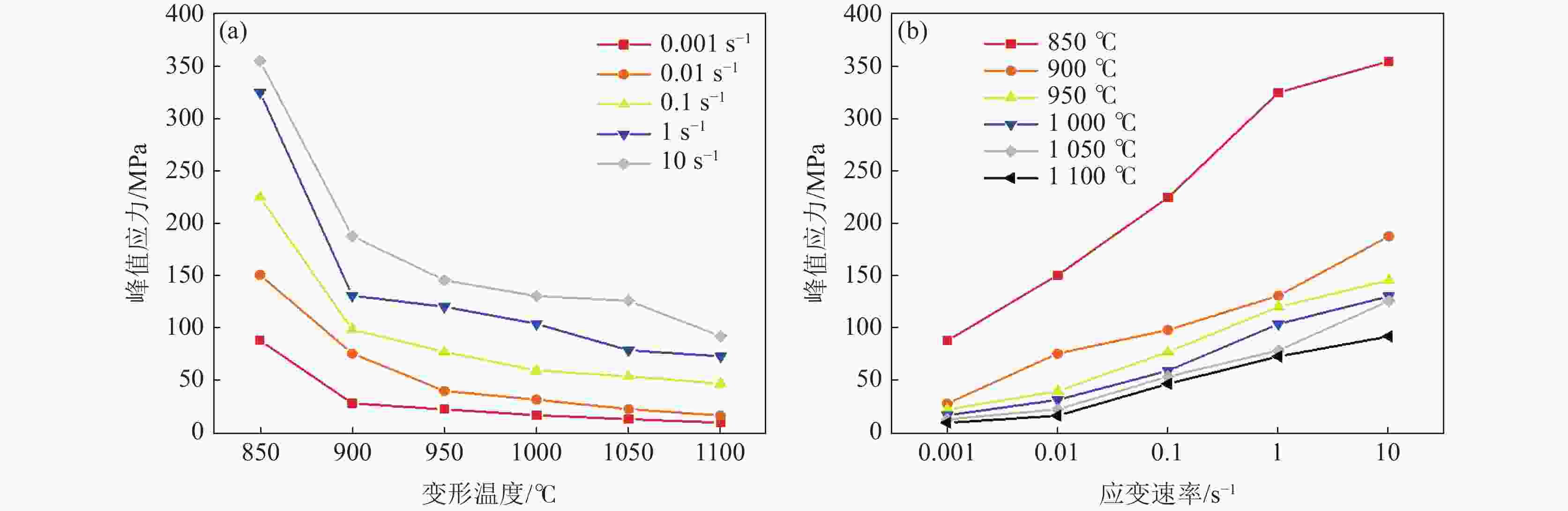 Figure  3.  Effect of deformation temperature (a) and strain rate (b) on peak stress