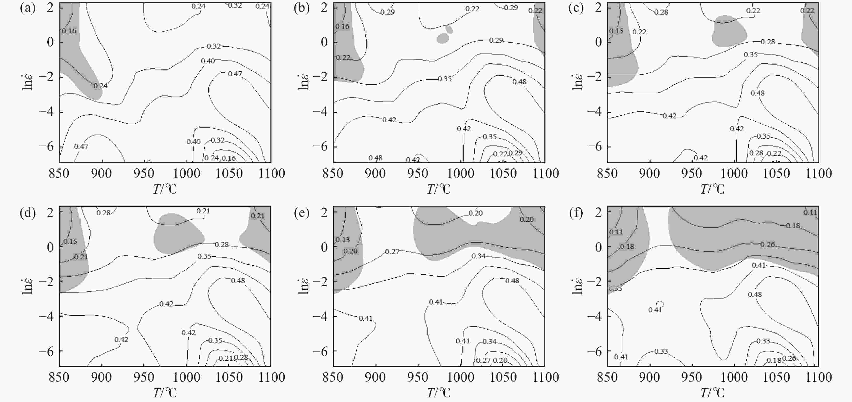 Figure  7.  Thermal processing maps of TC21 alloy at different strains
