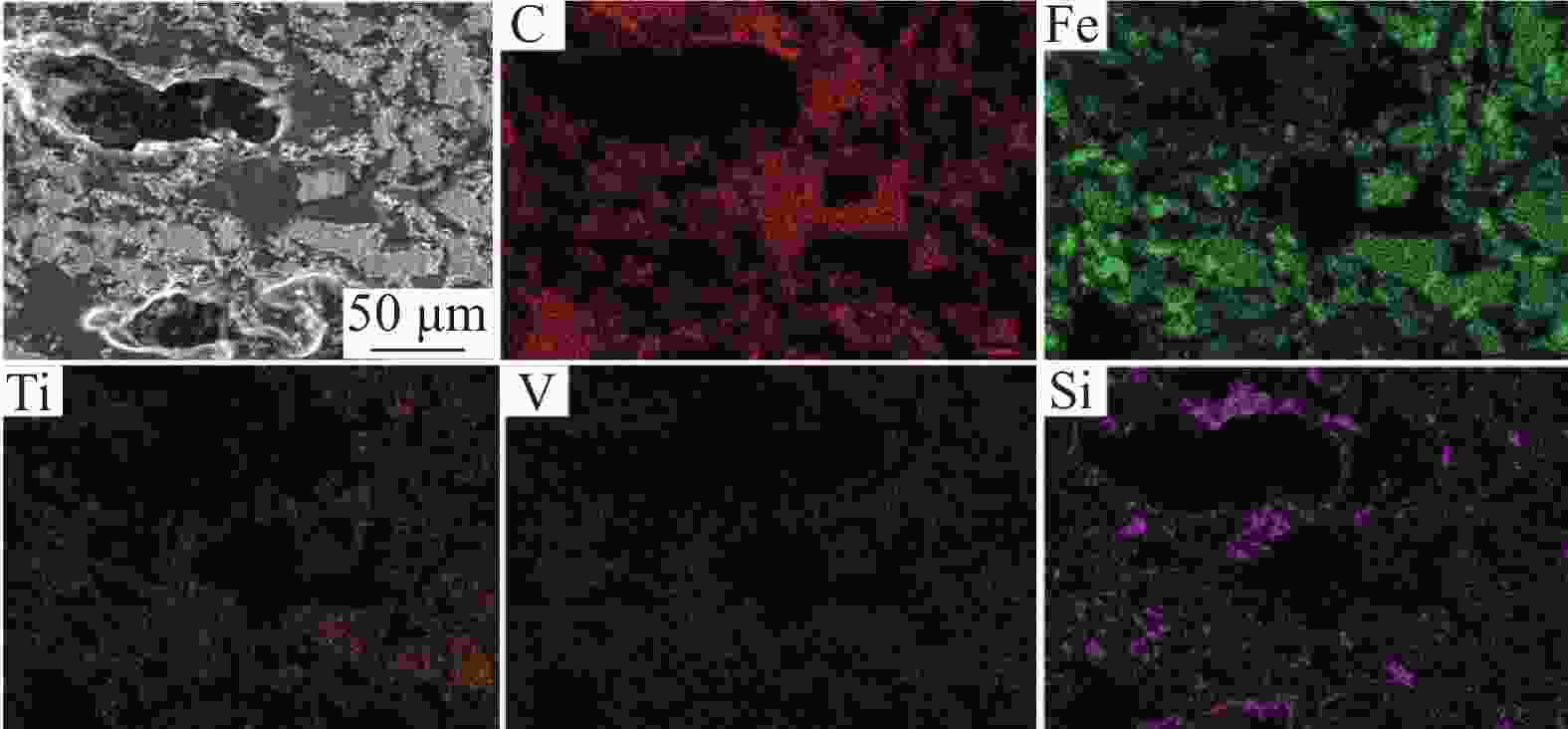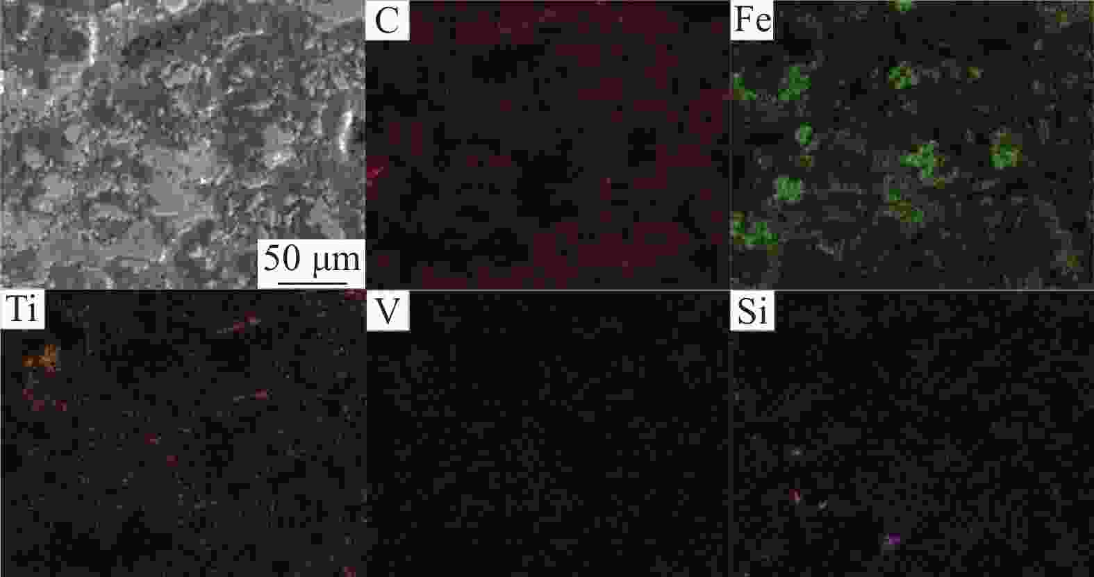 图  9  钒钛磁铁矿H2气氛还原后的EDS图像