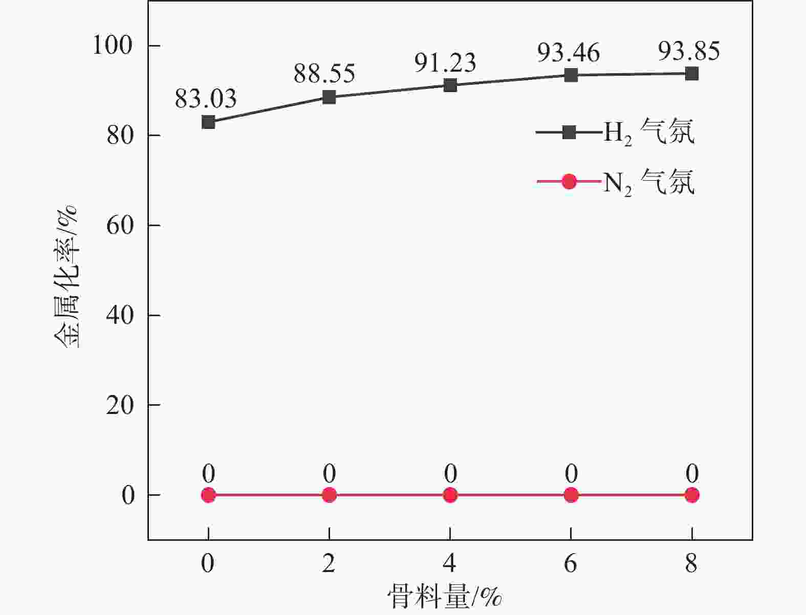 图  3  骨料量对钒钛磁铁矿金属化率的影响