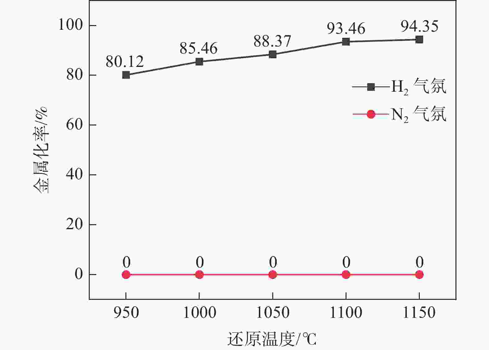 图  5  还原温度对钒钛磁铁矿金属化率的影响