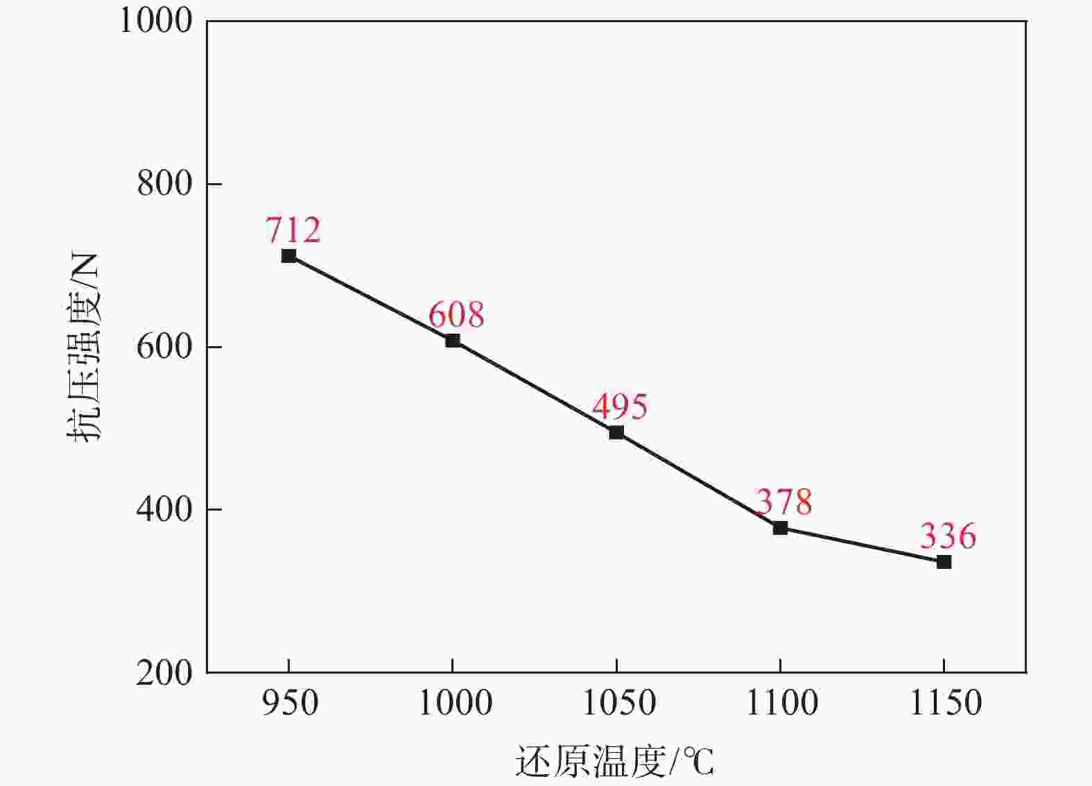 图  6  还原温度对钒钛磁铁矿抗压强度的影响