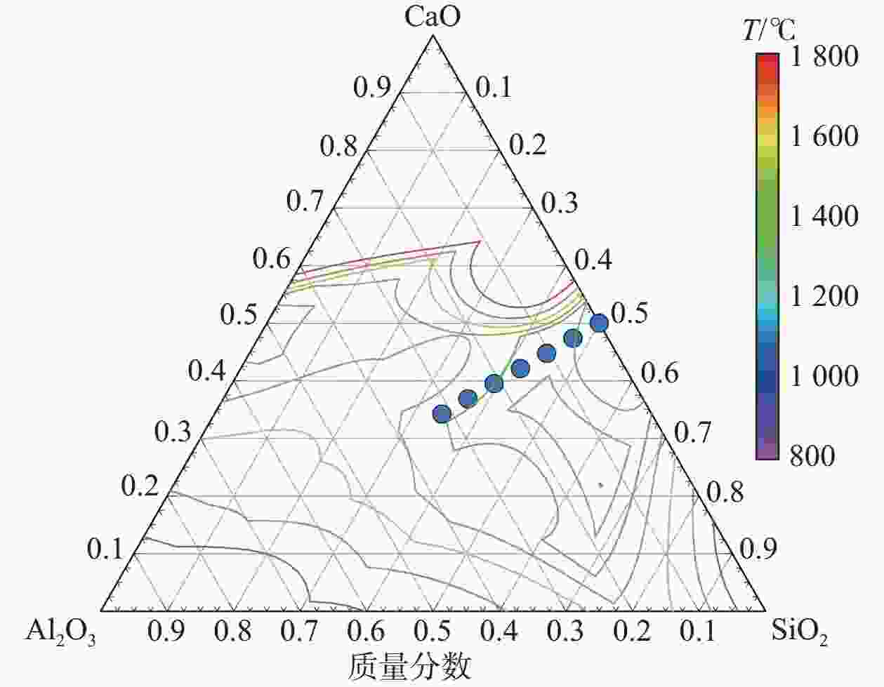 % 模型 CaO Al2O3 SiO2 MgO A0 47.5 0 47.5 5 A1 45 5 45 5 A2 42.5 10 42.5 5 A3 40 15 40 5 A4 37.5 20 37.5 5 A5 35 25 35 5 A6 32.5 30 32.5 5 -