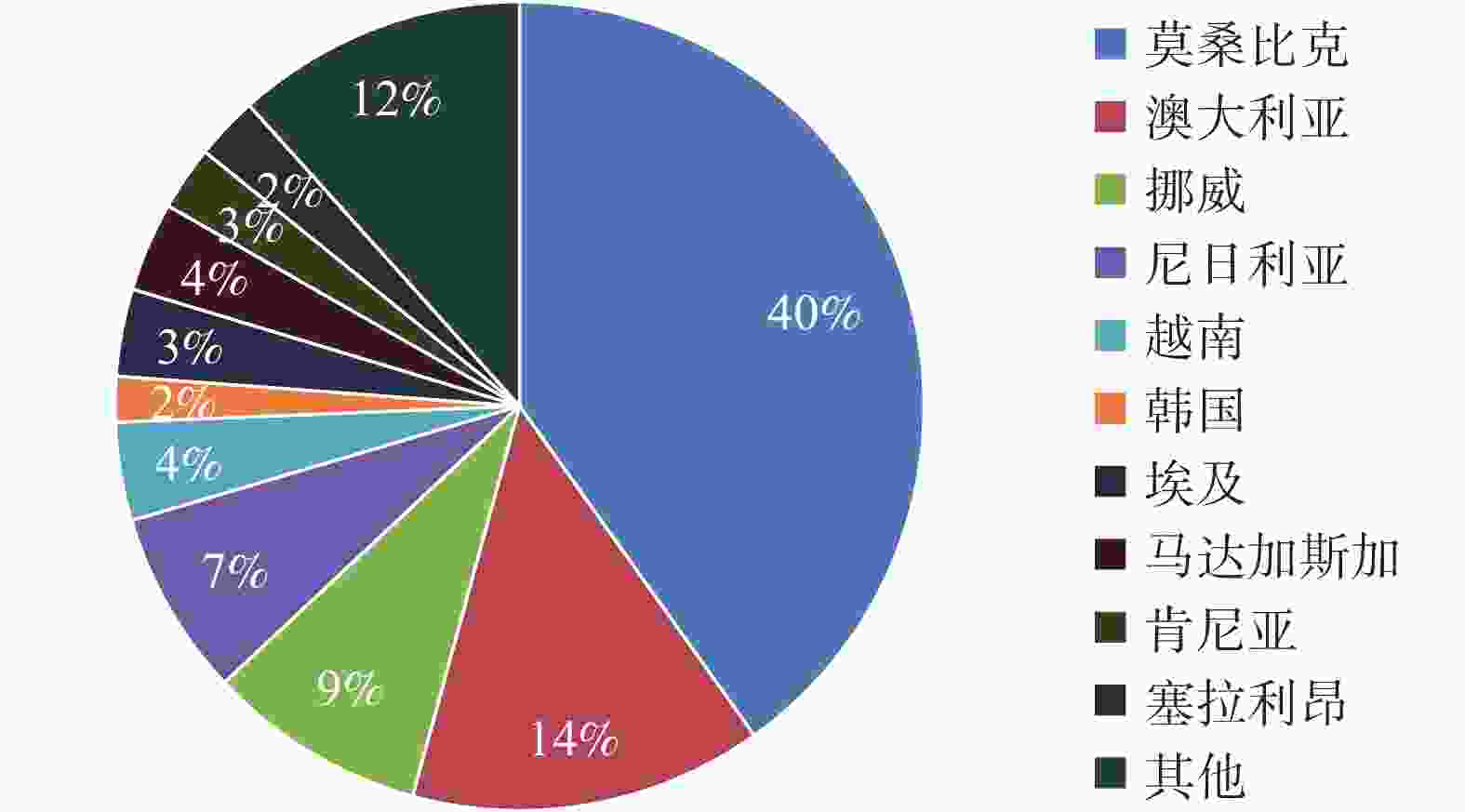 表  1  2024年全球钛矿、金红石产量(TiO2含量)