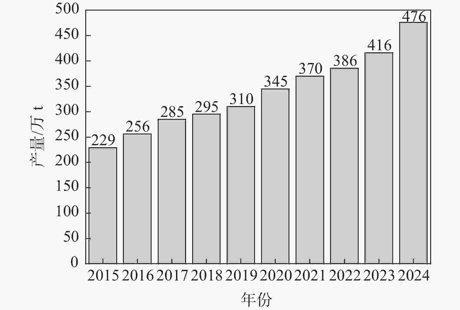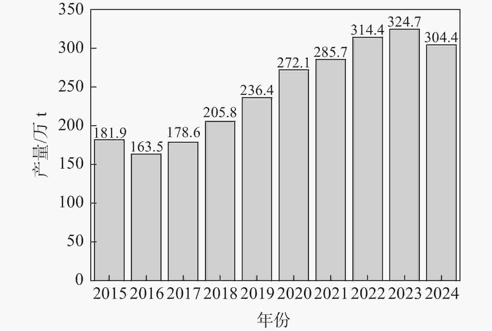 Figure  1.  Trend of China’s titanium ore production from 2015 to 2024