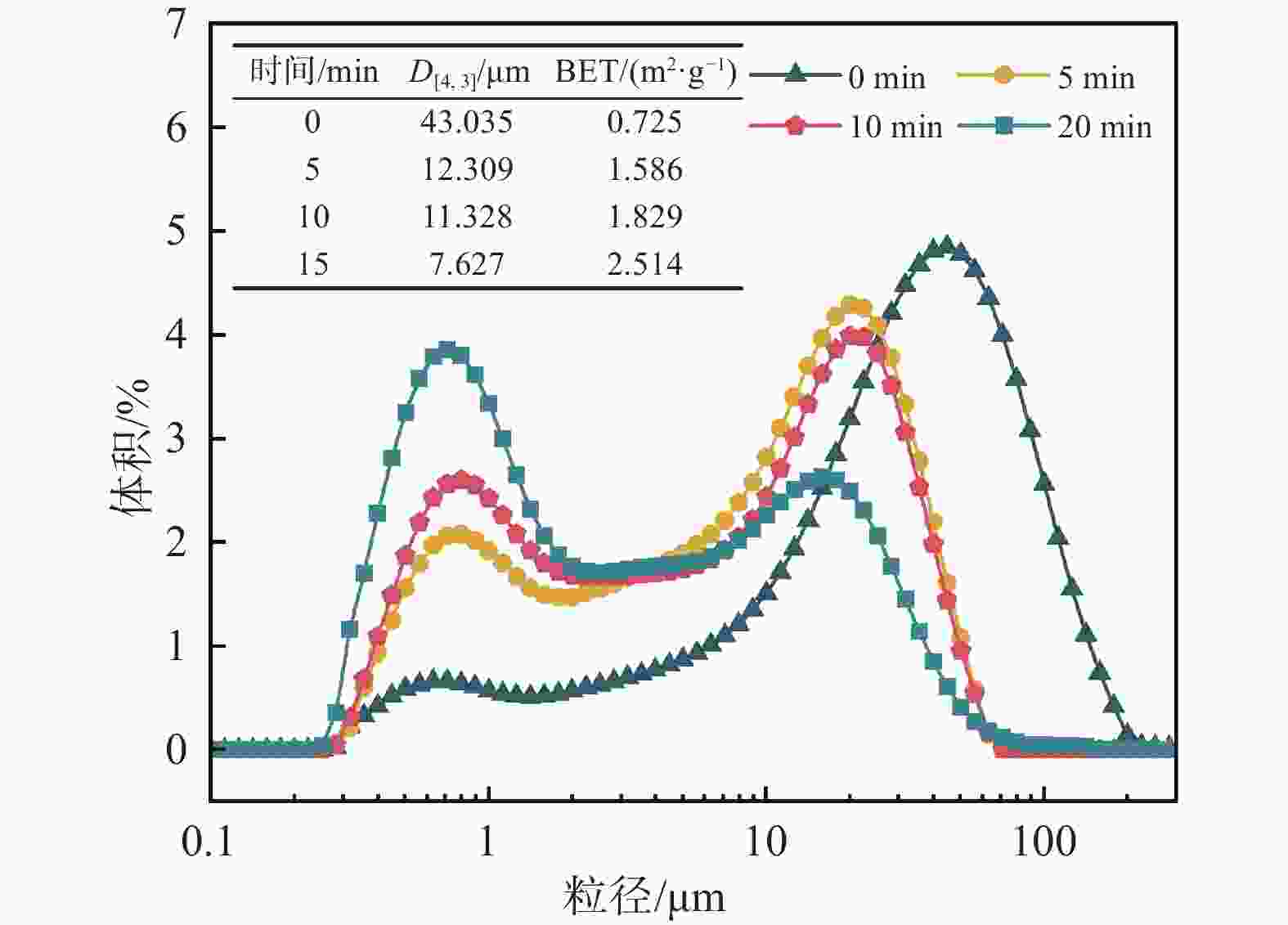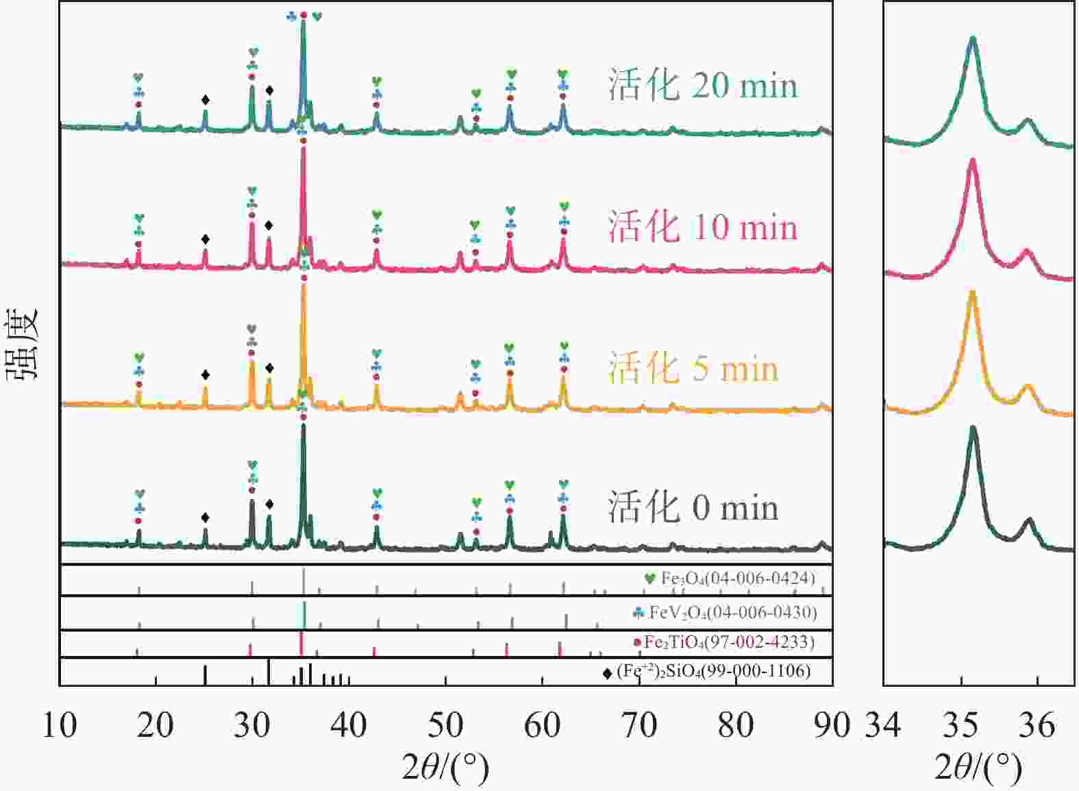 摘要: 针对钒渣钠化焙烧-水浸提钒工艺一次焙烧转化率低、高温回转窑结圈等技术难题,提出了机械活化-造球协同预处理强化钒渣提钒技术。通过高能球磨活化促进钒渣物相解离与微观结构调控,提升其反应活性,并通过造球工艺改善原料传热均匀性与氧化速率,提高回转窑处理效率。采用XRD、激光粒度分析和BET比表面积等测定手段,系统分析了活化前后钒渣的物理化学性质及焙烧转浸变化规律。结果表明,机械活化会导致晶格畸变引起衍射峰宽化,且将钒渣平均粒径从43.035 μm降至7.627 μm,比表面积从0.725 m2/g升至2.514 m2/g;机械活化可显著提高钒渣混料球团的下落强度与抗压强度;钒渣最佳焙烧温度降低50 ℃,一次焙烧钒浸出率达到95.38%。新技术在低温下实现了钒收率提高,有效避免了回转窑结圈,是一种高效提钒技术。Abstract: To resolve the low conversion rate in single-pass roasting and ring formation in rotary kilns during conventional sodium roasting-water leaching process, this study proposed an innovative mechanical activation-granulation co-pretreatment technology. High-energy ball milling was introduced to promote phase dissociation and microstructure modification of vanadium slag, significantly enhancing its reactivity. Granulation process was optimized to improve heat transfer uniformity and oxidation rate of raw materials. Through XRD, laser particle size analysis, and BET measurements, the physicochemical evolution of vanadium slag was systematically characterized. Results indicate that mechanical activation can cause lattice distortion and diffraction peak broadening. It reduces the average particle size of vanadium slag from 43.035 μm to 7.627 μm and increases the specific surface area from 0.725 m2/g to 2.514 m2/g. The optimal roasting temperature is reduced by 50 °C, achieving a 95.38% vanadium leaching rate in single-pass roasting. This technology not only improves vanadium yield at lower temperatures but also effectively prevents rotary kiln ring formation, enabling an efficient and clean extraction process.