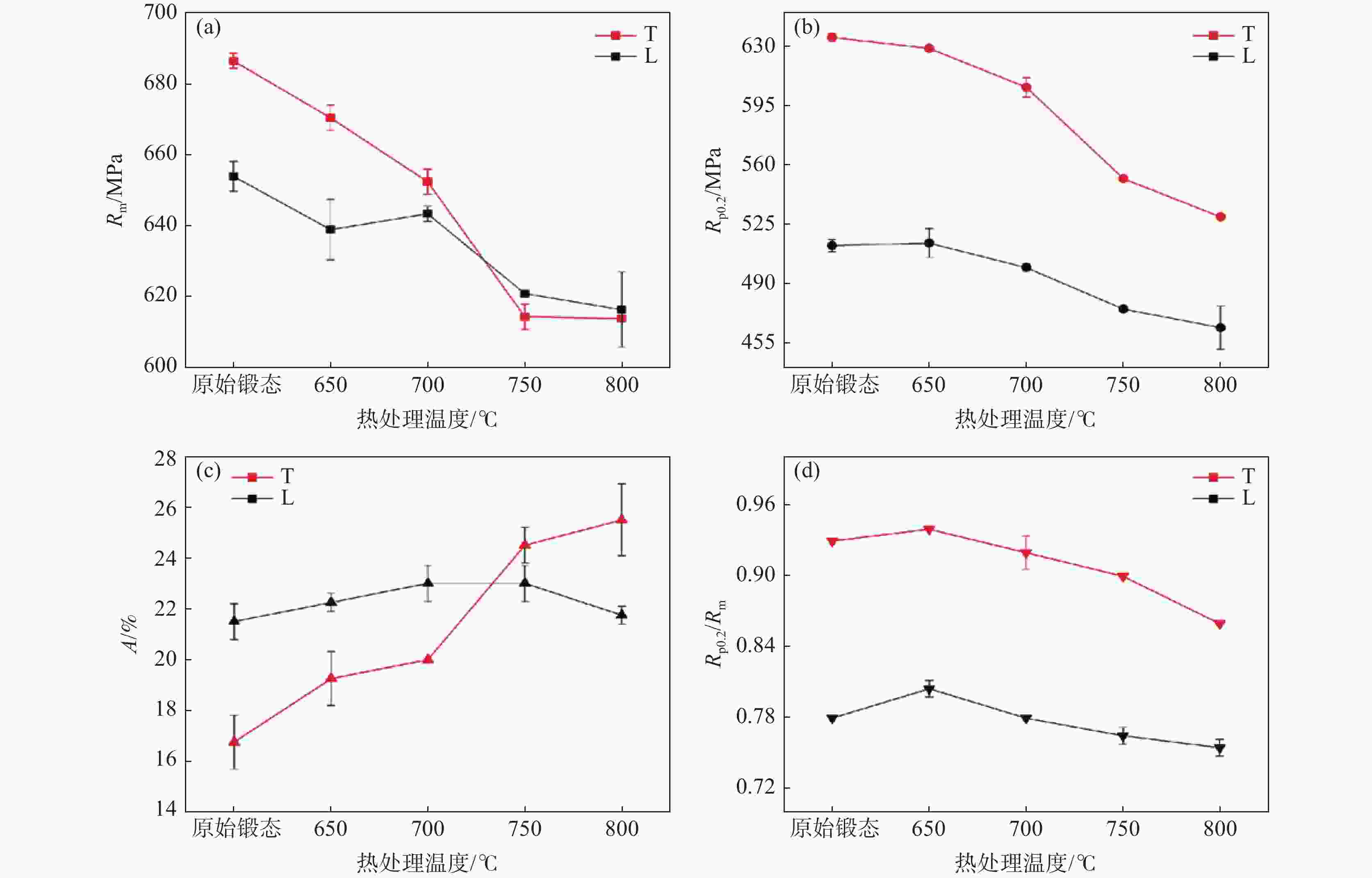 工艺编号 热处理制度 温度/℃ 时长/h 方式 1# 650 1 AC 2# 700 1 AC 3# 750 1 AC 4# 800 1 AC -