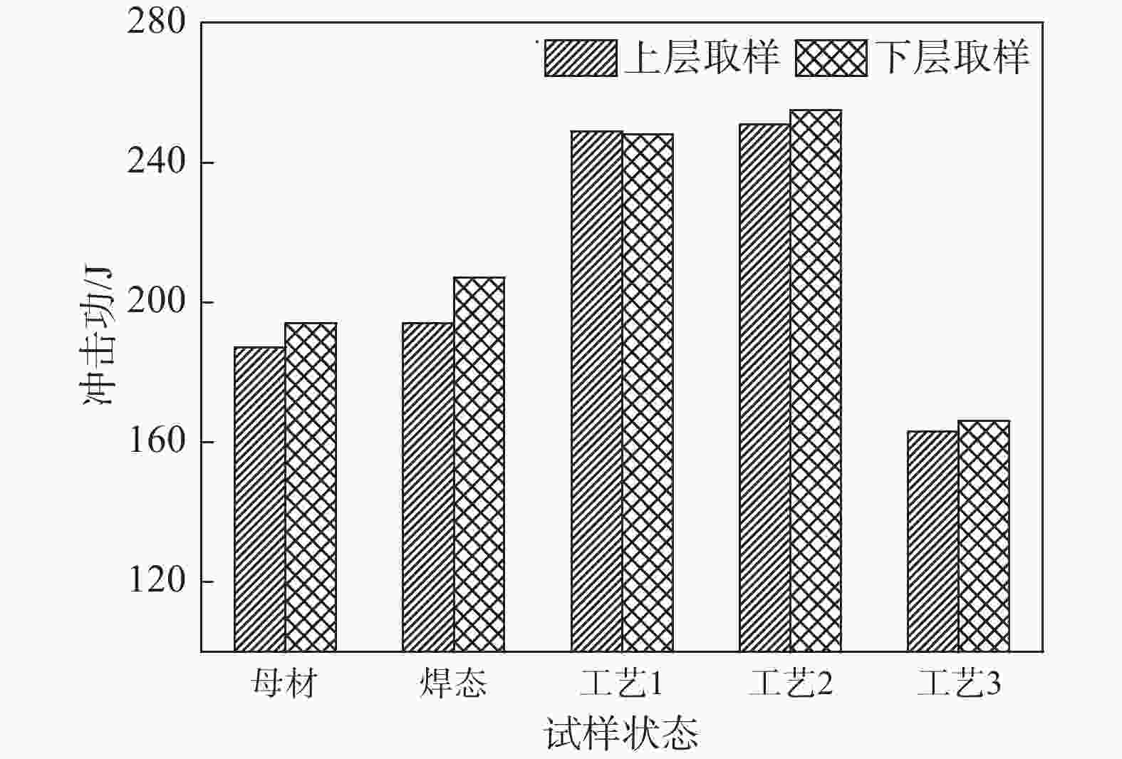 • 摘要: 对30 mm厚TA1真空电子束焊接试板开展了再结晶退火。通过对接头开展金相组织检验、拉伸、冲击试验,研究不同再结晶退火工艺对接头微观组织及力学性能的影响。结果表明:相较于组织为等轴α相的母材,高硬度锯齿α相和针状α'相的生成使对应的焊态下接头和900 ℃×2 h再结晶退火工艺下接头的屈服强度和抗拉强度提升,但随之而来的是接头塑性(即断后伸长率)和韧性(即冲击功)的大幅下降。母材具有的等轴α相以及700 ℃×2 h和800 ℃×2 h再结晶退火工艺下获得的近似等轴α相有利于提升韧性和塑性,使母材及对应工艺下的接头表现出了具有较高的塑性和韧性;800 ℃×2 h退火工艺下接头的强度与韧性获得最佳匹配。