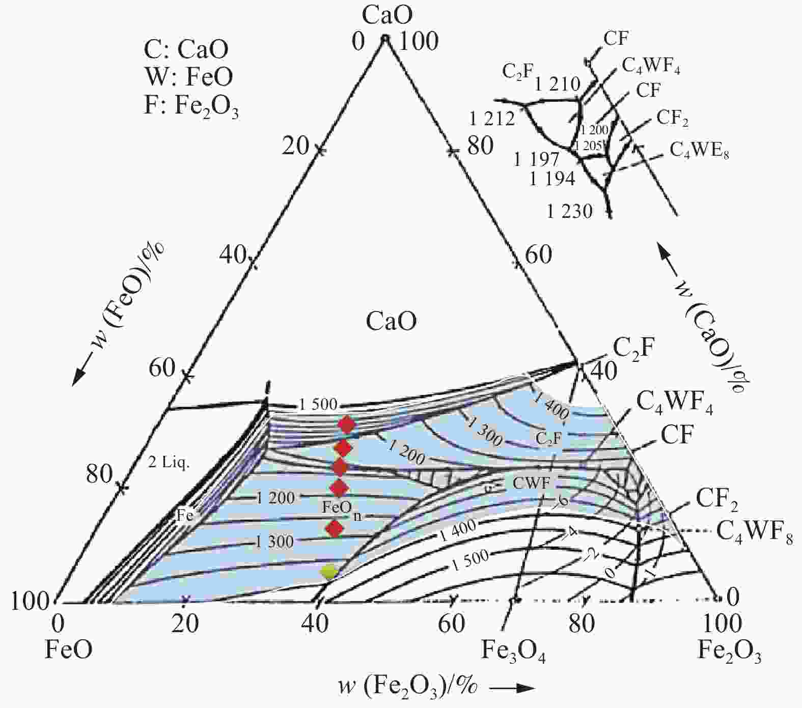 图 2 Fe2O3-FeO-CaO三元相图[12]