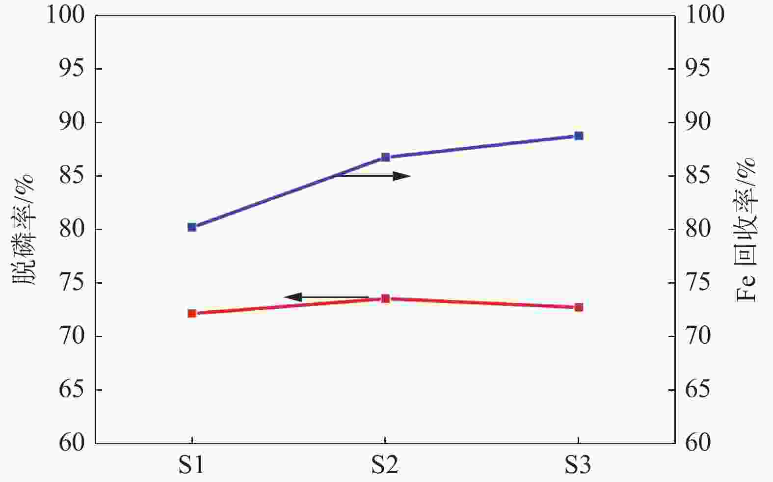 编号 w[P]/% 脱磷率/% 0 min 3 min 5 min 10 min 15 min 20 min S1 0.413 0.165 0.123 0.118 0.109 0.115 72.2 S2 0.414 0.150 0.132 0.112 0.107 0.109 73.6 S3 0.412 0.153 0.115 0.104 0.105 0.112 72.8 -
