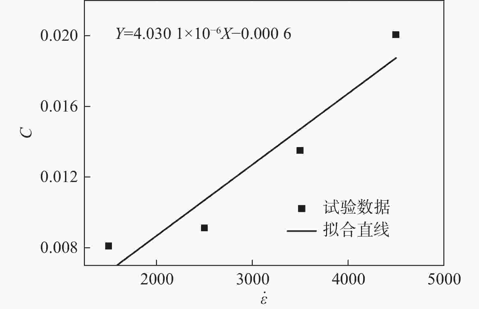 Figure  6.  Fitting diagram of the relationship between J-C constitutive equation parameters $ C $ and strain rate $ \dot \varepsilon $