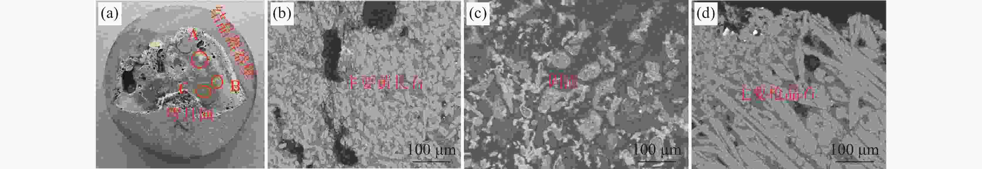 (a)渣圈总貌;(b)截取样1;(c)截取样2;(d)(c)渣圈的光薄片