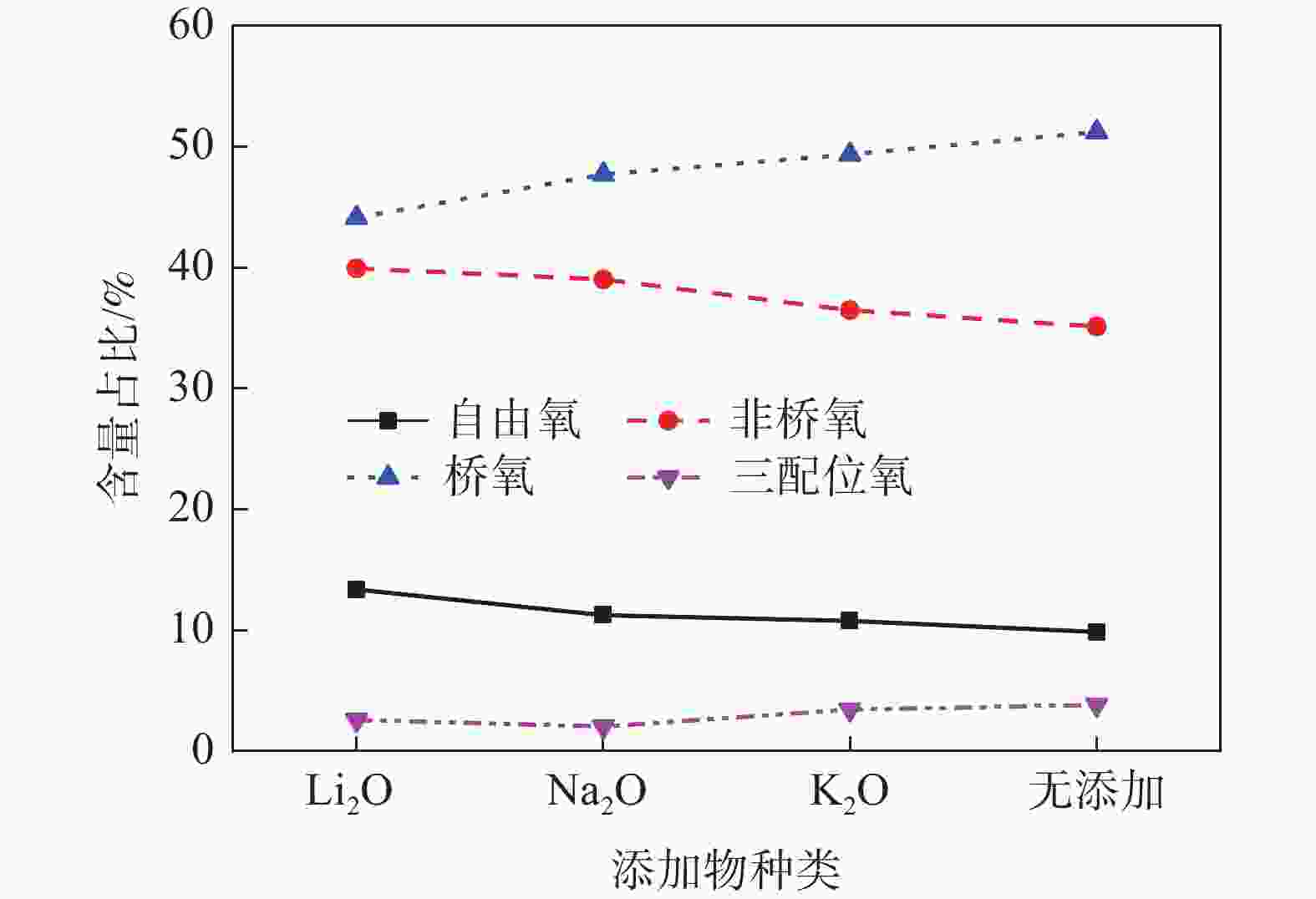 图  5  不同碱性氧化物对CaO-Al2O3体系中氧类型分布的影响