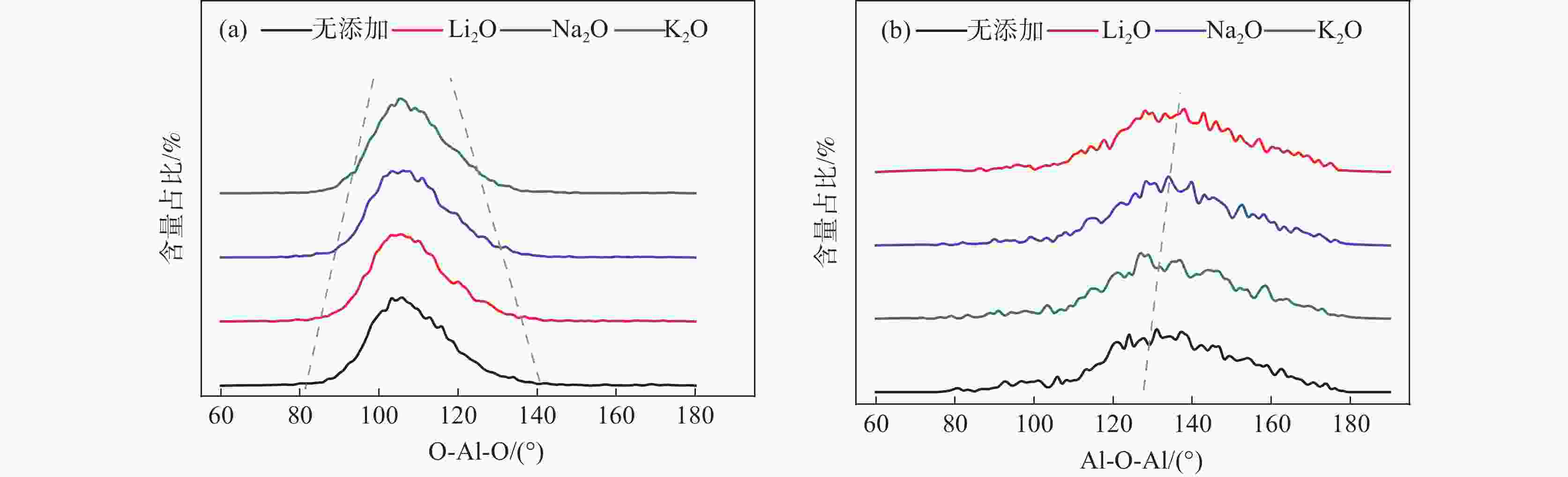 图  7  不同碱性氧化物对CaO-Al2O3体系中键角分布的影响
