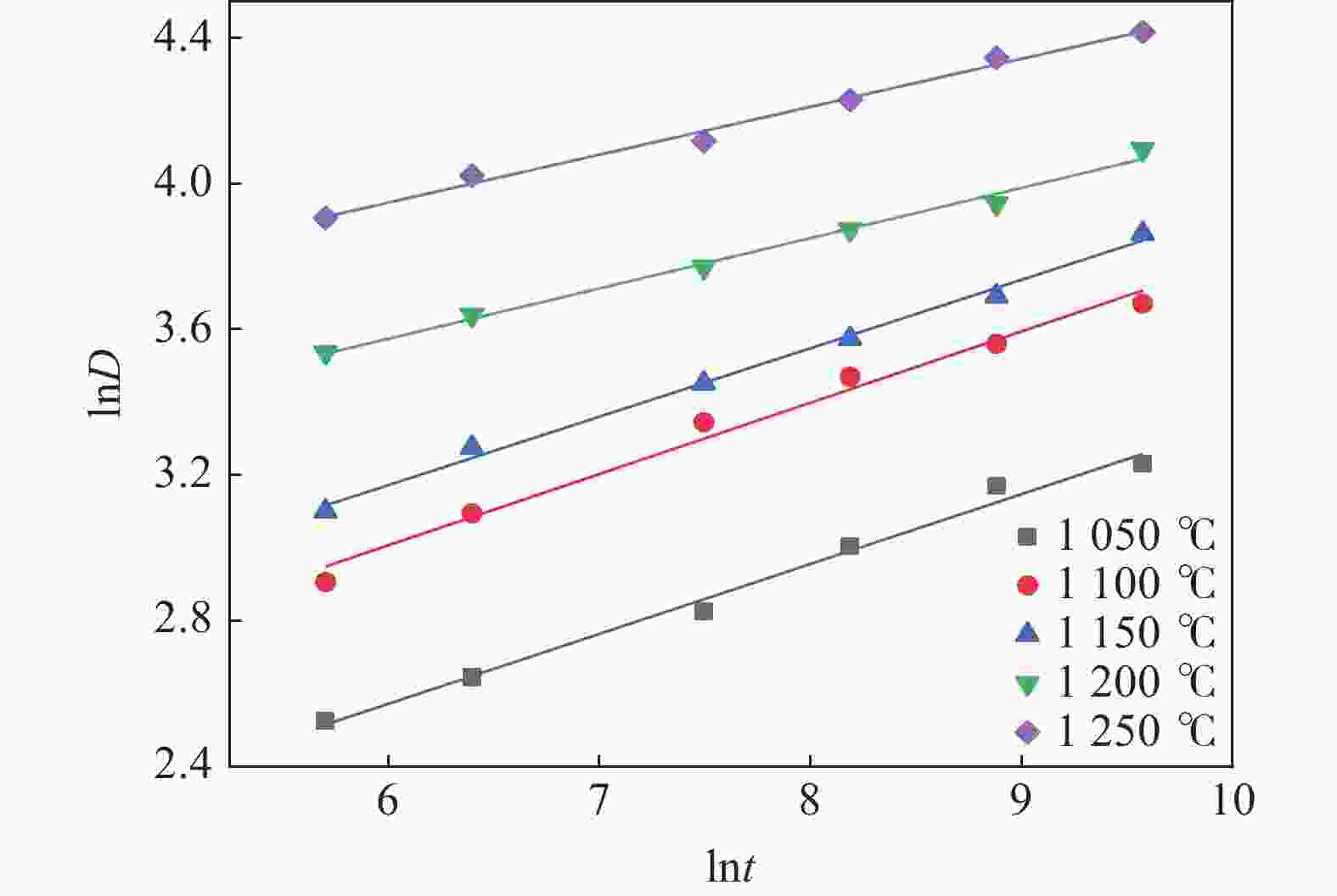 % C Si Mn P S Cr Ni Mo Nb Ti Al Fe 0.059 0.21 1.60 0.0076 0.0012 $\leqslant $0.6 0.050 0.014 0.033 余量 表 2 奥氏体晶粒在不同温度下的长大规律