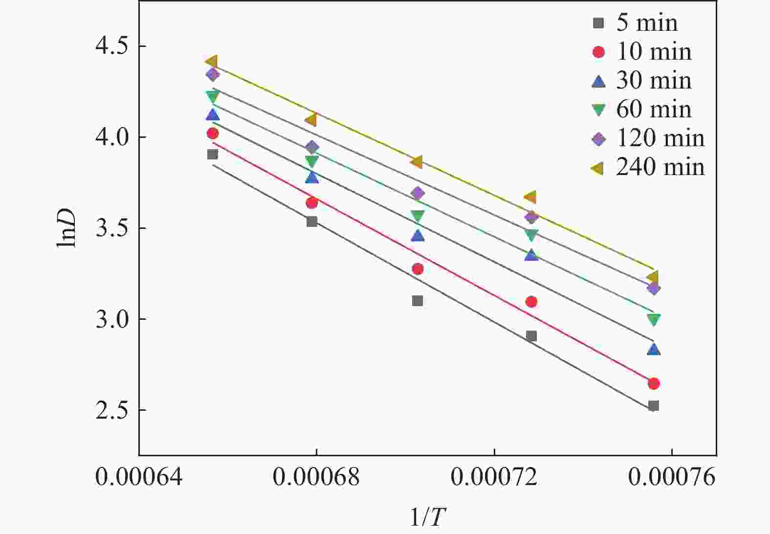 温度/℃ n K 温度/℃ n K 1050 0.19189 4.14076 1200 0.13806 15.57769 1100 0.19568 6.25400 1250 0.1315 23.54515 1150 0.18785 7.73186 表 3 Nb/Ti质量比随温度变化关系