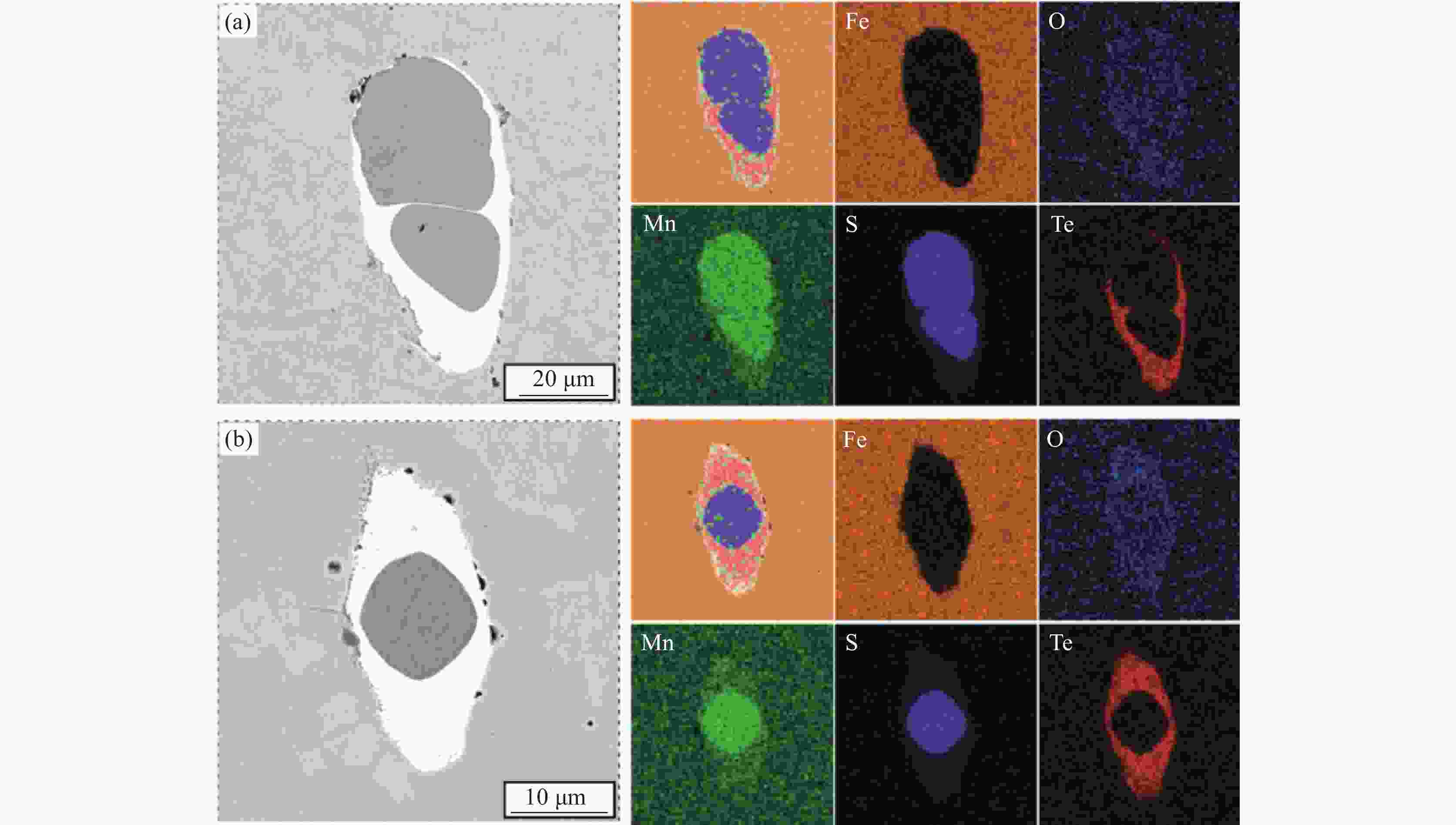 (a)双核MnS和MnTe复合夹杂物; (b)单核MnS和MnTe复合夹杂物