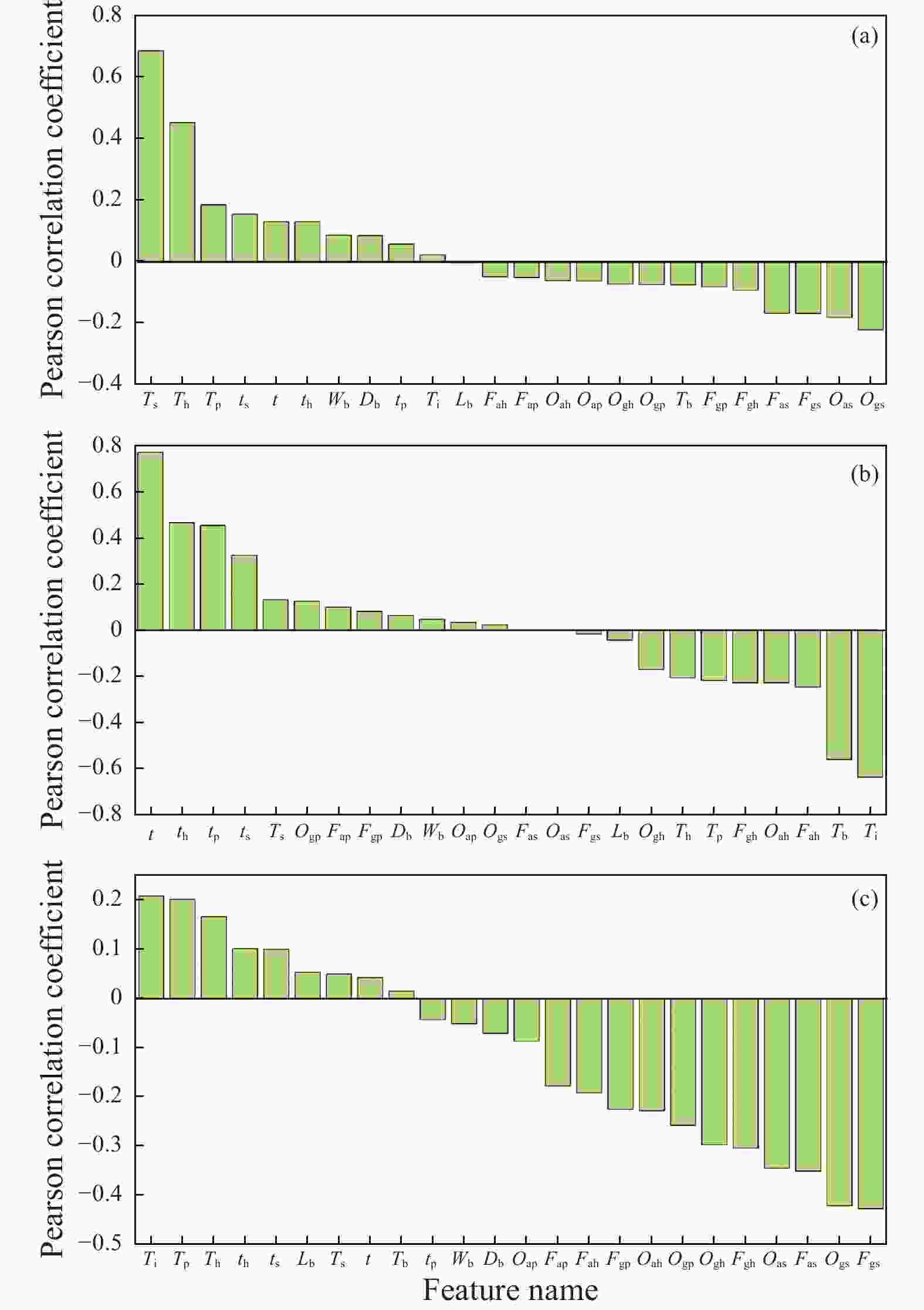 Figure  2.  Pearson correlation coefficient values between selected input features and Td, Ei, and Bo